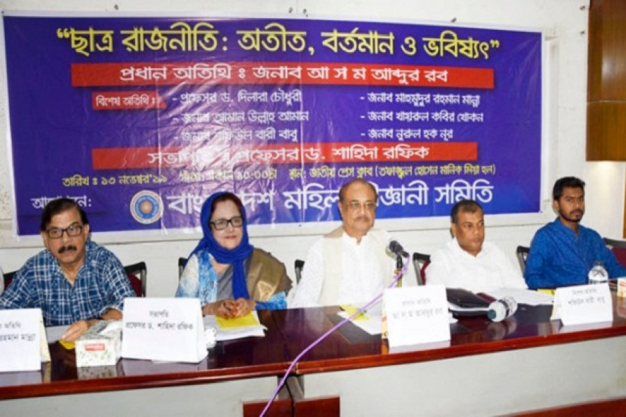 আয়োজক সংগঠন বাংলাদেশ মহিলা বিজ্ঞান সমিতির সভাপতি অধ্যাপক শাহিদা রফিকের সভাপতিত্বে সভায় প্রধান অতিথি ছিলেন ডাকসুর সাবেক ভিপি ও জেএসডির সভাপতি আ স ম আব্দুর রব। ডাকসুর আরেক সাবেক সভাপতি ও নাগরিক ঐক্যের আহ্বায়ক মাহমুদুর রহমান মান্নাও ছিলেন বিশেষ অতিথি।