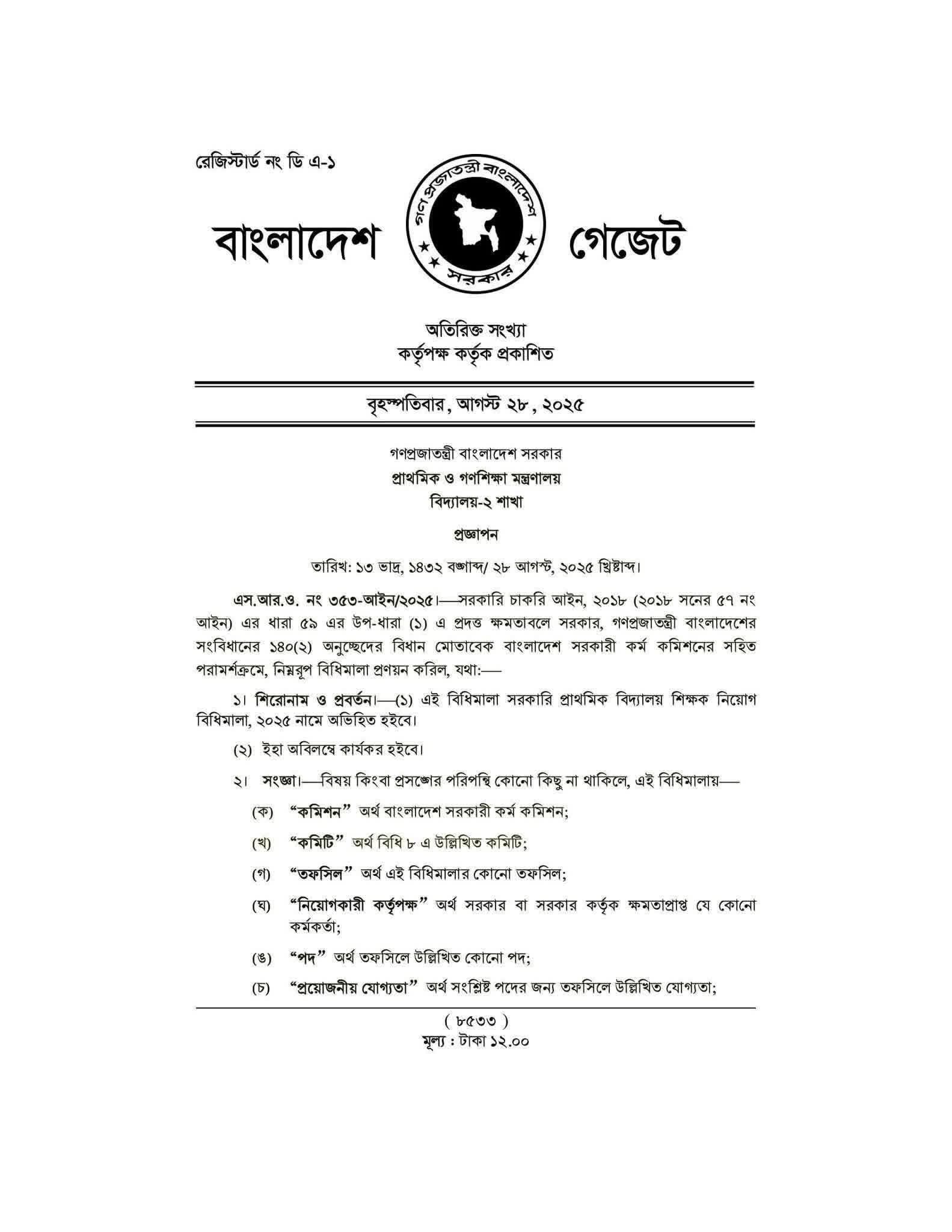 প্রাথমিক শিক্ষক নিয়োগে নতুন বিধিমালা প্রকাশ, দেখুন এখানে