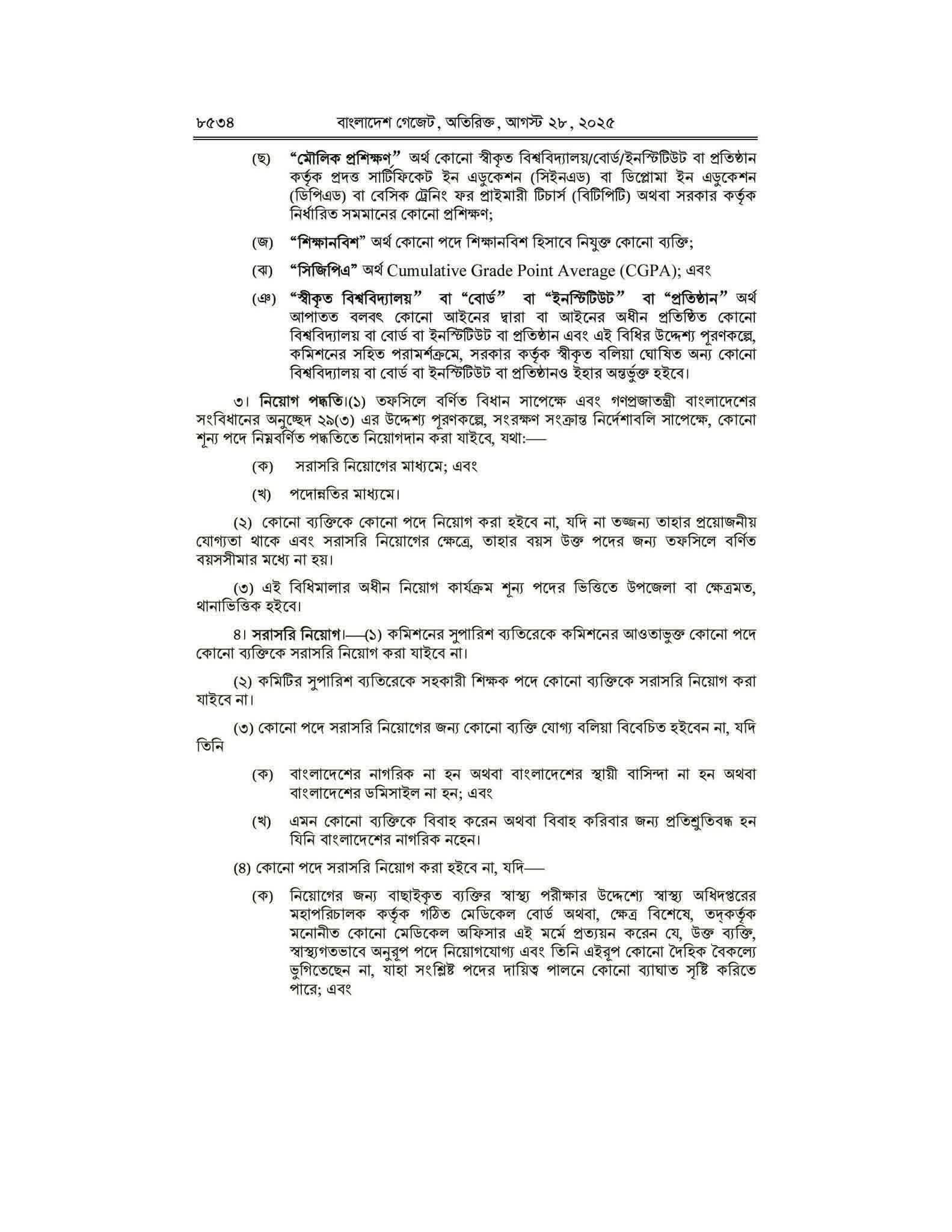 বিধিমালায় এবার শরীরিক শিক্ষা ও সঙ্গীত বিষয়েও সহকারী শিক্ষক পদ অন্তর্ভুক্ত করা হয়েছে। সরাসরি নিয়োগযোগ্য ৯৩ শতাংশ পদের মধ্যে ২০ শতাংশ পদ বিজ্ঞান বিষয়ে স্নাতক ডিগ্রিধারীদের এবং ৮০ শতাংশ অন্যান্য বিষয়ে স্নাতক ডিগ্রিধারীদের মধ্য থেকে পূরণ করা হবে।