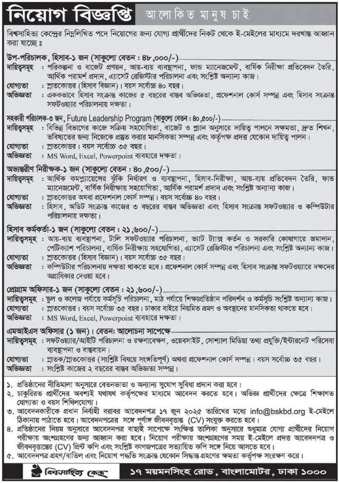 বিশ্বসাহিত্য কেন্দ্রে বিভিন্ন পদে চাকরি, সর্বনিম্ন বেতন ২১৬০০