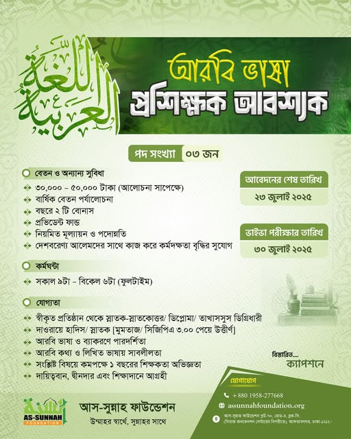 আস-সুন্নাহ ফাউন্ডেশনে চাকরি, আকর্ষণীয় বেতন-প্রভিডেন্ট ফান্ডসহ দেবে নানা সুবিধা