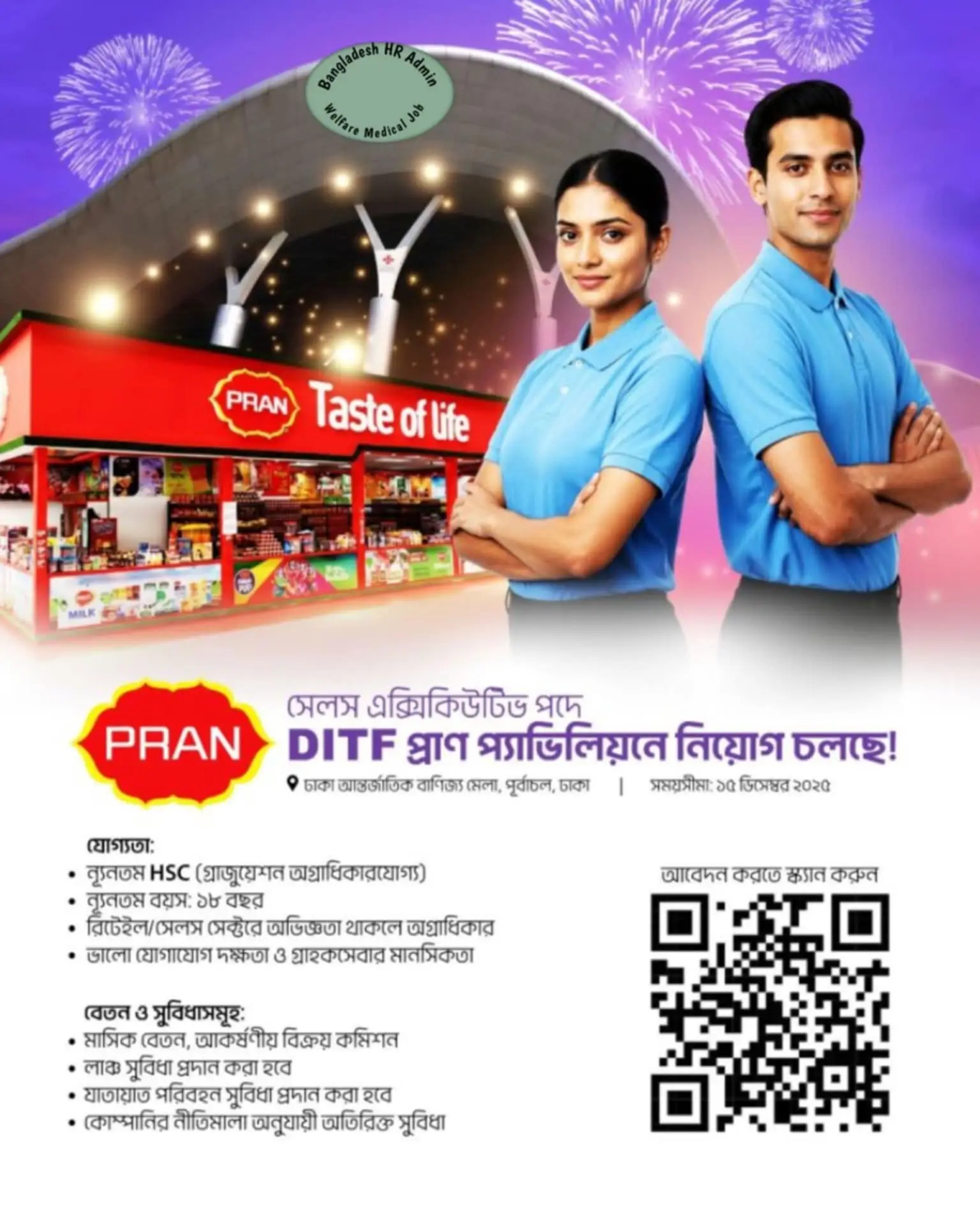 বাণিজ্য মেলায় সেলস এক্সিকিউটিভ নিয়োগ দেবে প্রাণ গ্রুপ, আবেদন অভিজ্ঞতা ছাড়াই