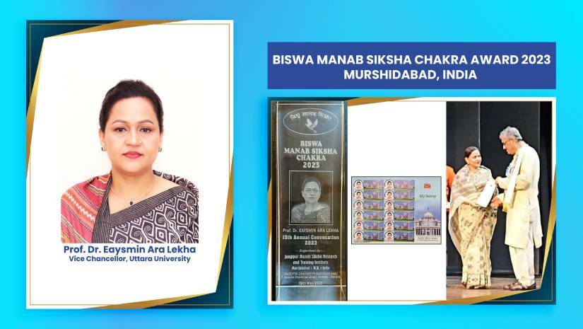 ভারতের মুর্শিদাবাদ জেলার জঙ্গীপুর মানব শিক্ষা রিসার্চ এন্ড ট্রেনিং ইনস্টিটিউটের ১৫তম সমাবর্তন অনুষ্ঠানে “বিশ্ব মানব শিক্ষাচক্র অ্যাওয়ার্ড ২০২৩” পেয়েছেন বাংলাদেশের বিশিষ্ট শিক্ষাবিদ, সমাজসেবক ও উত্তরা ইউনিভার্সিটির উপাচার্য প্রফেসর ড. ইয়াসমীন আরা লেখা।