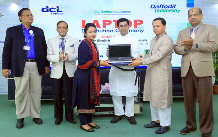 ‘একজন ছাত্র একটি ল্যাপটপ’ প্রকল্পের দেড় হাজার শিক্ষার্থীর মাঝে ল্যাপটপ বিতরণ করেছে ড্যাফোডিল ইন্টারন্যাশনাল ইউনিভার্সিটি। শনিবার বিশ্ব্যাববিদ্যালয়ের একাত্তর মিলনায়তনে সংসদ সদস্শেয শেখ ফজলে নূর তাপস আনুষ্ঠানিকভাবে শিক্ষার্থীদের হাতে বিনামূল্যের ল্যাপটপ তুলে দেন।