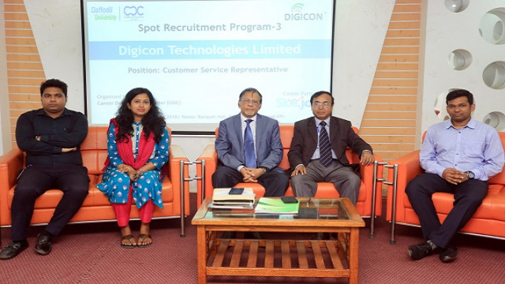 শিক্ষার্থীদের চাকরির সুযোগ করে দিতে ড্যাফোডিল ইন্টারন্যাশনাল ইউনিভার্সিটির (ডিআইইউ) ব্যাঙ্কুয়েট হলে অনুষ্ঠিত হলো ‘স্পট রিক্রুটমেন্ট’ কর্মসূচী।  ড্যাফোডিল ইন্টারন্যাশনাল ইউনিভার্সিটি ও প্রযুক্তি প্রতিষ্ঠান ডিজিকন টেকনোলজিস এবং ‘স্কিল ডট জবস্’ যৌথভাবে এ কর্মসূচীর আয়োজন করে।