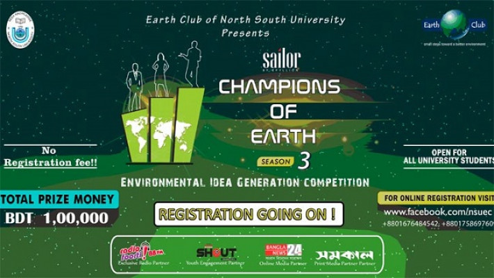 দেশের সর্ববৃহৎ পরিবেশ বিষয়ক উদ্ভাবনী প্রতিযোগিতা সেইলর ‘চ্যাম্পিয়ন অফ আর্থ’-এর রেজিস্ট্রেশন চলছে । তৃতীয় বারের মতো অনুষ্ঠেয় এই প্রতিযোগিতার আয়োজক নর্থ সাউথ বিশ্ববিদ্যালয়ের আর্থ ক্লাব । আগামী ৪ অগাস্ট, ২০১৮ পর্যন্ত এই প্রতিযোগিতার অনলাইন নিবন্ধন চলবে। সব বিশ্ববিদ্যালয়ের ছাত্র-ছাত্রীদের জন্য প্রতিযোগিতাটি উন্মুক্ত। এজন্য কোনো নিবন্ধন ফি দিতে হবে না।