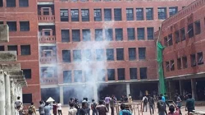 জানা যায়, সকাল ১০টা থেকে সাড়ে ১০টার দিকে বাইরের কিছু ছেলে হঠাৎ ক্যাম্পাসের গেটের বাইরে থেকে ইটপাটকেল ছুড়তে থাকে। পরে বিশ্ববিদ্যালয়ের শিক্ষার্থীরা তাদের ধাওয়া করলে পালিয়ে যায়। এরপর স্টুডেন্টরা বাইরে মিছিল করলে পুলিশ টিয়ারশেল ছোড়ে।