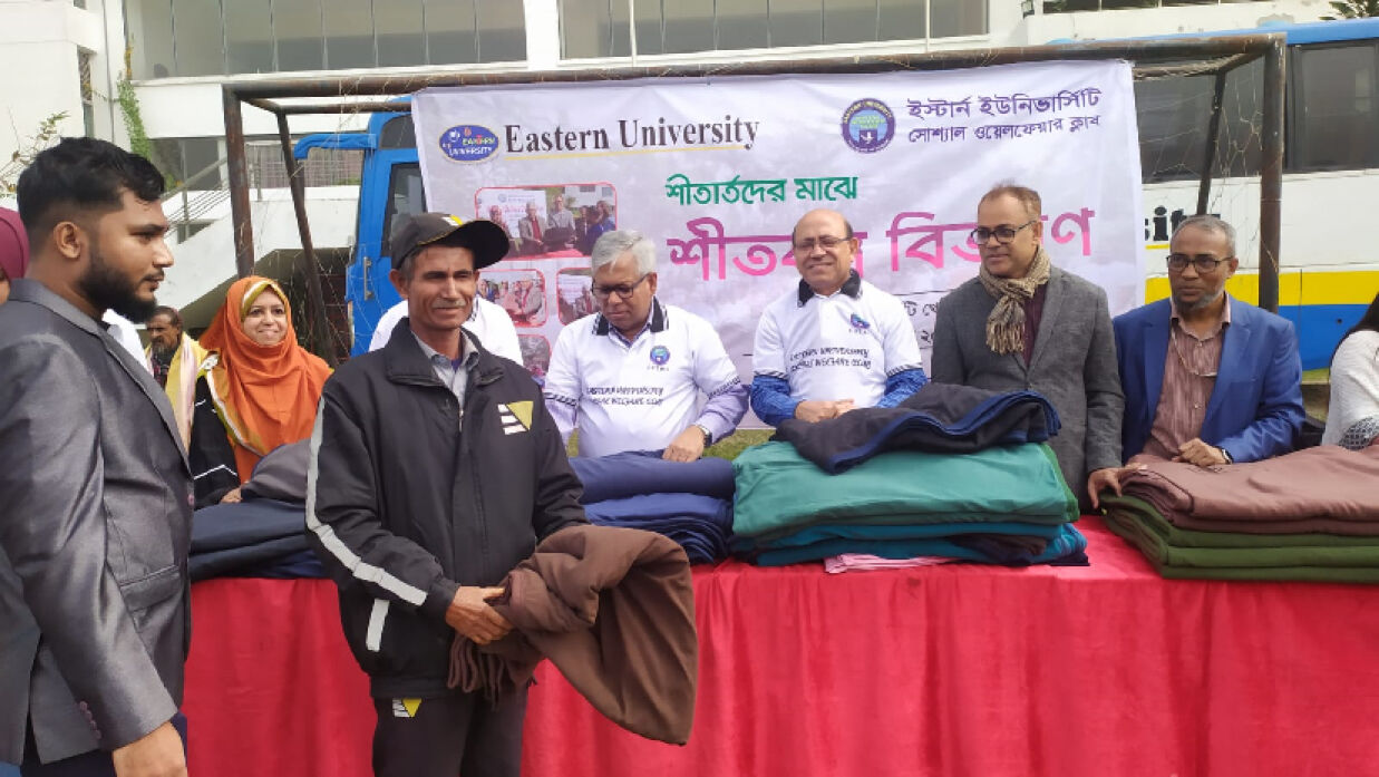 ইস্টার্ন ইউনিভার্সিটি কর্তৃপক্ষ ও বোর্ড অব ট্রাস্টিজের সদস্যদের আর্থিক সহায়তায় প্রতি বছর শীতে কম্বল বিতরণ কার্যক্রম পরিচালনা করে বিশ্ববিদ্যালয়ের সোশ্যাল ওয়েলফেয়ার ক্লাব। তারই ধারাবাহিকতায় এই আয়োজনে প্রধান অতিথি হিসেবে উপস্থিত থেকে কম্বল বিতরণ কার্যক্রম উদ্বোধন করেন বিশ্ববিদ্যালয়ের উপাচার্য অধ্যাপক ড. সহিদ আকতার হুসাইন। এমন মানবিক উদ্যোগ গ্রহণের জন্য তিনি ক্লাব কমিটিকে ধন্যবাদ জানান।