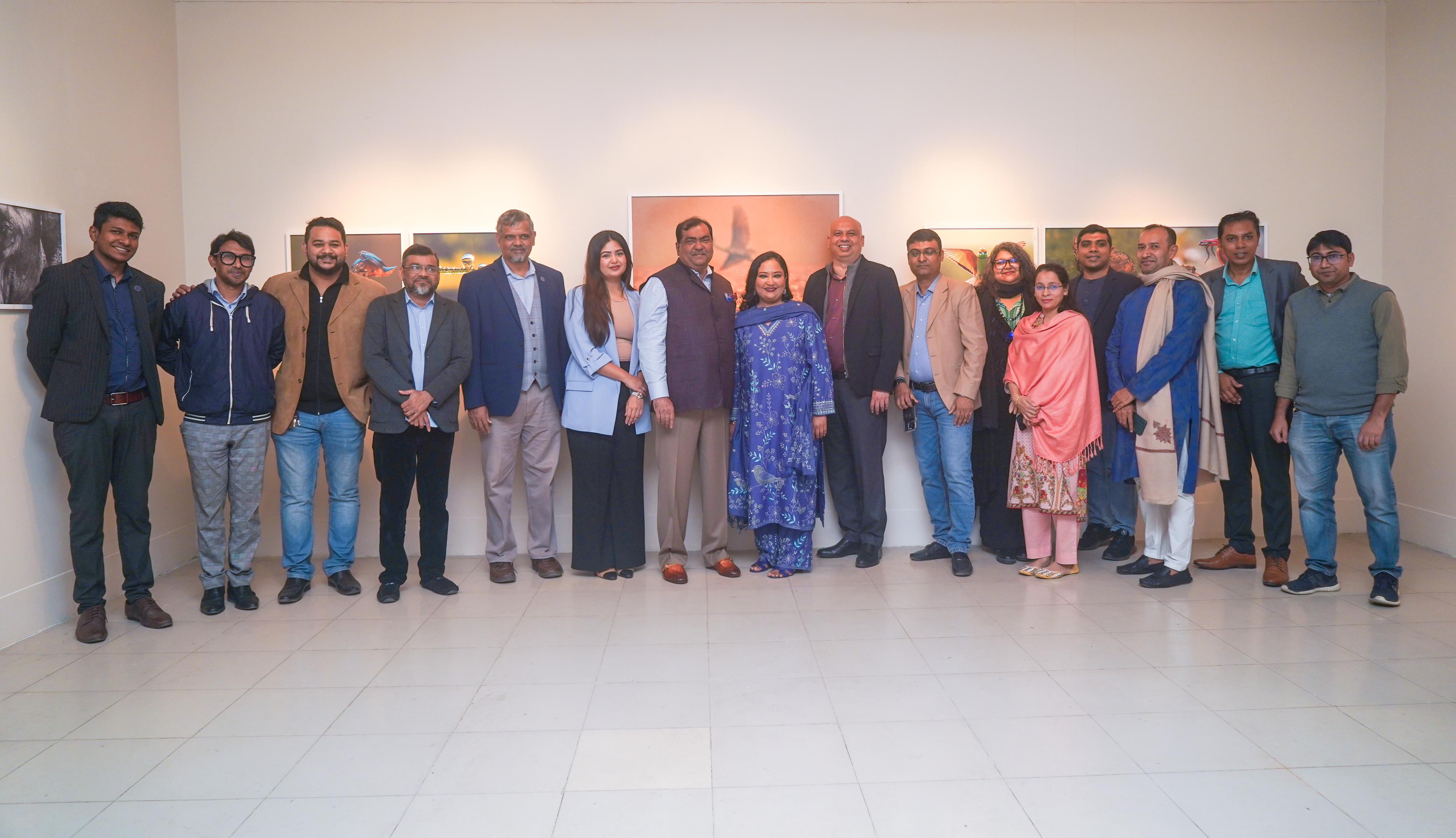 প্রদর্শনী ঘুরে দেখার পর অতিথিদের ফটোসেশন। নিজস্ব ছবি।