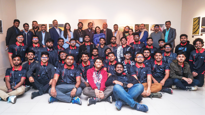 অনুষ্ঠানে অতিথিদের সঙ্গে এআইইউবি ফটোগ্রাফি ক্লাবের সদস্যরা। নিজস্ব ছবি।