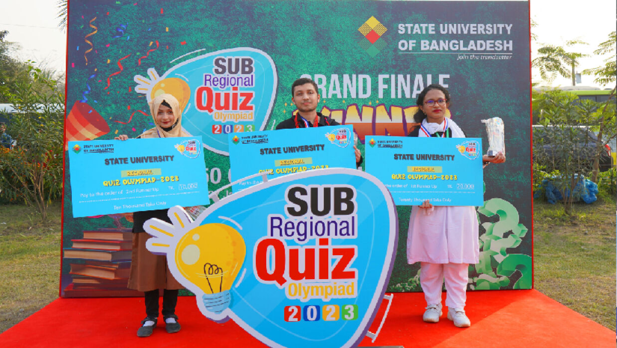 উল্লেখ্য, গত অক্টোবর ২০২৩ এ শুরু হওয়া আঞ্চলিক কুইজ অলিম্পিয়াড এর প্রথম পর্বে স্ব স্ব কলেজের শিক্ষার্থীরা নিজেদের মধ্যে প্রতিযোগিতা করে চূড়ান্ত পর্বের জন্য নির্বাচিত হয়। চূড়ান্ত পর্বের দিন সকাল ১০টা থেকে বিভিন্ন কলেজ থেকে নির্বাচিত শিক্ষার্থীরা এসইউবির ক্যাম্পাসে আসা শুরু করে। বেলা ১২টায় কুইজ আরম্ভ হয়ে ১টায় শেষ হয়। মধ্যাহ্ন ভোজের পর পুরস্কার বিতরণী ও বিভিন্ন কলেজ থেকে আমন্ত্রিত অধ্যক্ষ ও শিক্ষকদের নিয়ে আলোচনা সভা অনুষ্ঠিত হয়। অনুষ্ঠানে ৫০ কলেজের মোট ৫০ জন অধ্যক্ষ মহদয় কে বিশেষ সম্মাননা ও ক্রেস্ট প্রদান করা হয়। এ সময় আগত শিক্ষকদের পক্ষে শুভেচ্ছা বক্তব্য রাখেন গিয়াস উদ্দিন ইসলামিক মডেল অ্যান্ড কলেজ, নারায়ণগঞ্জ এর অধ্যক্ষ মির মোহাম্মদ মোসাদ্দকে হোসেন। অনুষ্ঠান সভাপতিত্ব করেন স্টেট ইউনিভার্সিটির উপাচার্য (মনোনীত) অধ্যাপক ড. চৌধুরী মোফিজুর রহমান। সভাপতির বক্তব্যে এসইউবির উপাচার্য (মনোনীত) অধ্যাপক ড. চৌধুরী মোফিজুর রহমান বলেন, “এই কুইজ অলিম্পিয়াড এর মূল লক্ষ্য হলো শিক্ষার্থীরা যেন তাদের জ্ঞান এবং দক্ষতার একটি চ্যালেঞ্জিং প্ল্যাটফর্ম তৈরি করতে পারে এবং শিক্ষাক্রমের বাইরে তাদের জ্ঞান বাড়ানোর ব্যপারে উৎসাহী হয়। ভবিষ্যতে এধরনের ইভেন্ট সারা দেশব্যাপী করার আশাবাদ ব্যক্ত করেন”।