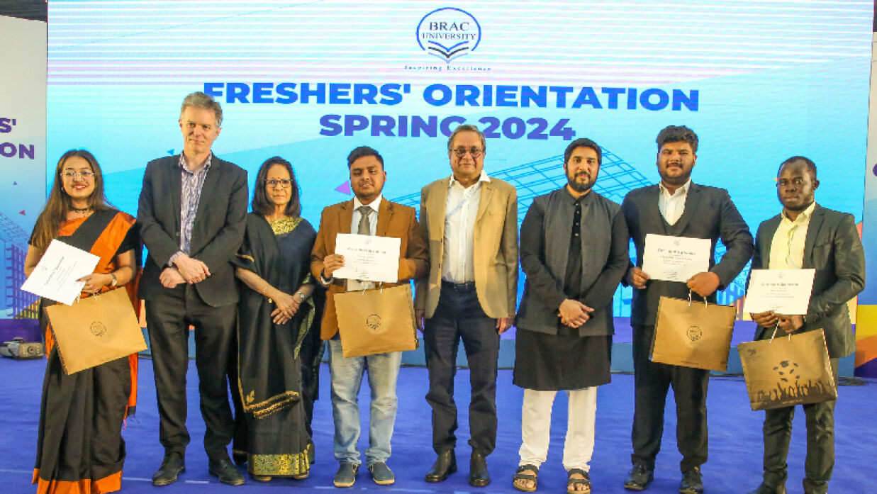 আড়ম্বরপূর্ণ অনুষ্ঠানের মাধ্যমে স্প্রিং ২০২৪ সেমিস্টারে ভর্তি হওয়া শিক্ষার্থীদের বরণ করেছে ব্র্যাক ইউনিভার্সিটি। ব্র্যাক ইউনিভার্সিটির সাথে নবীন শিক্ষার্থীদের অ্যাকাডেমিক যাত্রা, মূল্যবোধ, সুযোগ এবং স্বপ্নপূরণের দুর্দান্ত সূচনা উদযাপন করতেই এই ওরিয়েন্টেশন এর আয়োজন করা হয়।