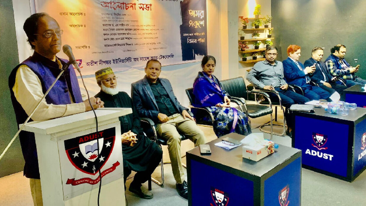 অতীশ দীপঙ্কর বিজ্ঞান ও প্রযুক্তি বিশ্ববিদ্যালয়ে মহান শহীদ দিবস ও আন্তর্জাতিক মাতৃভাষা দিবস উপলক্ষ্যে বোর্ড অব ট্রাস্টিজের মাননীয় চেয়ারম্যান অ্যাডভোকেট লিয়াকত সিকদার –এর সভাপতিত্বে এক আলোচনা সভা শুক্রবার বিকাল ৫ টায় অডিটোরিয়ামে অনুষ্ঠিত হয়েছে।