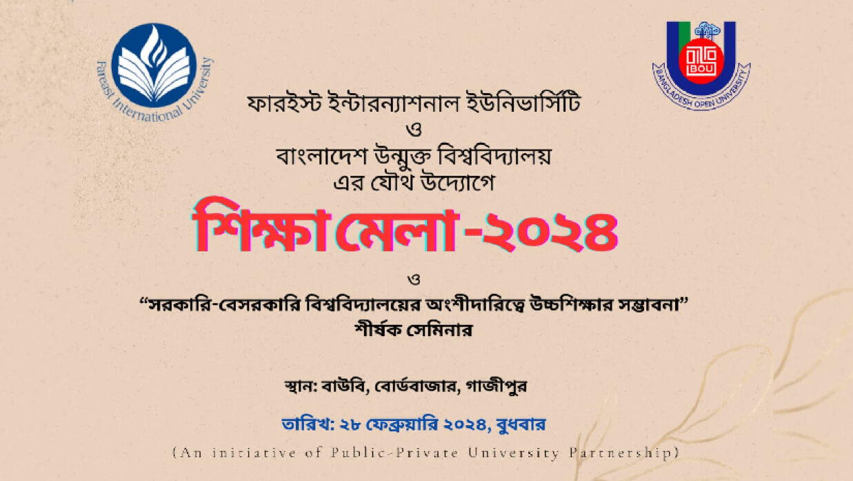 ফারইস্ট ইন্টারন্যাশনাল ইউনিভার্সিটি ও বাংলাদেশ উন্মুক্ত বিশ্ববিদ্যালয়ের যৌথ উদ্যোগে বাউবির গাজীপুরস্থ ক্যাম্পাসে “শিক্ষামেলা-২০২৪” আয়োজন করা হয়েছে। আগামী বুধবার (২৮ ফেব্রুয়ারি) বিশ্ববিদ্যালয়ের বঙ্গমাতা বেগম ফজিলাতুন্নেছা সম্মেলন ও প্রশিক্ষণ কেন্দ্র প্রাঙ্গণে এ শিক্ষামেলা অনুষ্ঠিত হবে।
