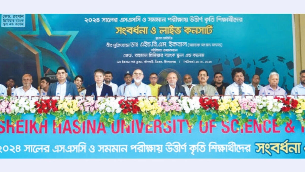 এ উপলক্ষে শেখ হাসিনা ইউনিভার্সিটি অব সায়েন্স অ্যান্ড টেকনোলজির ক্যাম্পাসে ২০২৩ সালের এইচএসসি ও সমমান পরীক্ষায় উত্তীর্ণ কৃতী শিক্ষার্থীদের এবং ২০২৪ সালের এসএসসি ও সমমান পরীক্ষায় উত্তীর্ণ কৃতী শিক্ষার্থীদের জন্য শেখ হাসিনা ইউনিভার্সিটি অব সায়েন্স অ্যান্ড টেকনোলজির পক্ষ থেকে সম্প্রতি সংবর্ধনা ও লাইভ কনসার্টের আয়োজন করা হয়।