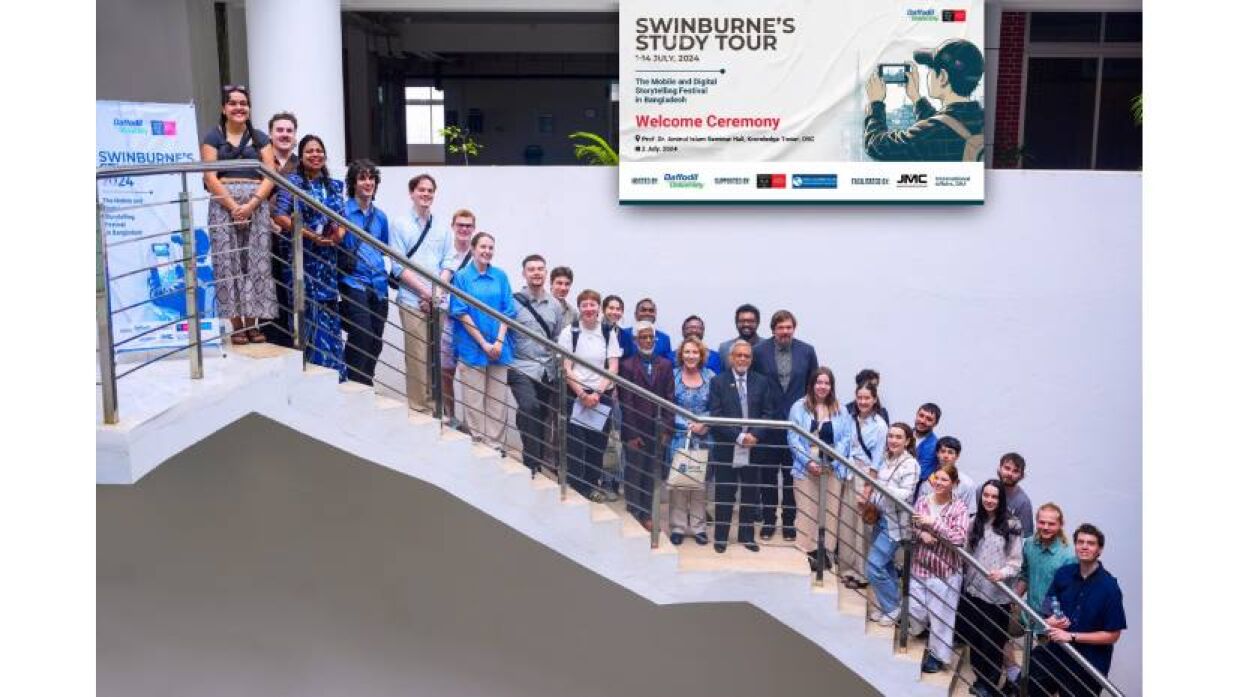 অস্ট্রেলিয়ার সুইনবার্ন ইউনিভার্সিটি অব টেকনোলজির ২২ সদস্যের শিক্ষার্থীর দল ‘সুইনবার্নের স্টাডি ট্যুর ২০২৪: বাংলাদেশে ডিজিটাল এবং মোবাইল স্টোরিটেলিং ফেস্টিভ্যাল’ শীর্ষক অনুষ্ঠানে যোগ দিতে ১৪ দিনের সফরে ড্যাফোডিল ইন্টারন্যাশনাল ইউনিভার্সিটিতে এসেছে। শিক্ষার্থী দলের নেতৃত্বে রয়েছেন সুইনবার্ন ইউনিভার্সিটি অব টেকনোলজির ফিল্ম, গেমস এবং অ্যানিমেশন বিভাগের চেয়ারম্যান অধ্যাপক সুসান কেরিগান এবং সহযোগী অধ্যাপক ম্যাক্স শ্লেসের। প্রতিনিধি দল আগামী ১৪ জুলাই পর্যন্ত ড্যাফোডিল ইন্টারন্যাশনাল ইউনিভার্সিটিতে অবস্থান করবে।