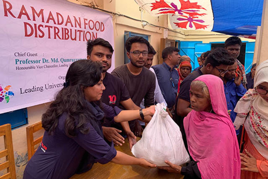 লিডিং ইউনিভার্সিটি সোশ্যাল সার্ভিসেস ক্লাবের উদ্যোগে খাদ্যসামগ্রী বিতরণ করা হয়েছে। গতকাল সোমবার রমাদান ফুড ডিস্ট্রিবিউশন-২০১৯ কর্মসূচীর অংশ হিসেবে পবিত্র রমজান মাসকে সামনে রেখে ওসমানী নগর উপজেলার নিজ বুরুঙ্গা ইউনিয়ন পরিষদের ১০০টি পরিবারের দরিদ্র অসহায় মানুষের মাঝে এ খাদ্যসামগ্রী বিতরণ করা হয়। এসময় বুরুঙ্গা ইউনিয়ন পরিষদের চেয়ারম্যান এবং মেম্বারগণ উপস্থিত ছিলেন।