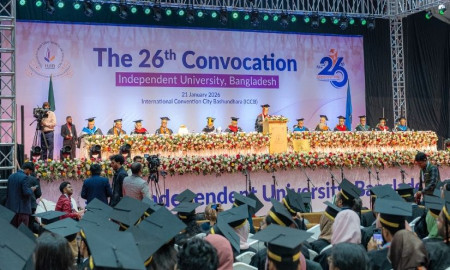 তিনি জানান, ইন্ডিপেনডেন্ট ইউনিভার্সিটি বাংলাদেশের ২৬তম সমাবর্তনে অংশ নিতে পারা তার জন্য এক গৌরবের বিষয়। সমাবর্তন আনন্দের মুহূর্ত হলেও এটি আত্মসমালোচনা ও দায়িত্ব গ্রহণেরও সময়। এটি কেবল একটি একাডেমিক অধ্যায়ের সমাপ্তি নয়, বরং বৃহত্তর দায়িত্বের সূচনাও বটে।