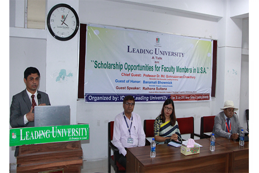 সিলেটে লিডিং ইউনিভার্সিটির আমেরিকান স্কলারশীপ বিষয়ক সেমিনার অনুষ্ঠিত হয়েছে। মঙ্গলবার (৩০ জুলাই ২০১৯) বিকাল ৩টায় বিশ্ববিদ্যালয়ের গ্যালারী-২ এ লিডিং ইউনিভার্সিটির ইনস্টিটিউশনাল কোয়ালিটি অ্যাসিউরেন্স সেলের (আইকিউএসি) উদ্যোগে এই সেমিনারের আয়োজন করা হয়।