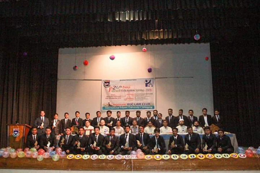 চট্টগ্রামের আন্তর্জাতিক ইসলামি বিশ্ববিদ্যালয় চট্টগ্রাম (আইআইইউসি) আইন বিভাগের ২৬তম ব্যাচের বিদায়ী সংবর্ধনা অনুষ্ঠিত হয়েছে। মঙ্গলবার বিশ্ববিদ্যালয়ের সেন্ট্রাল অডিটোরিয়ামে এই অনুষ্ঠানের আয়োজন করা হয়।