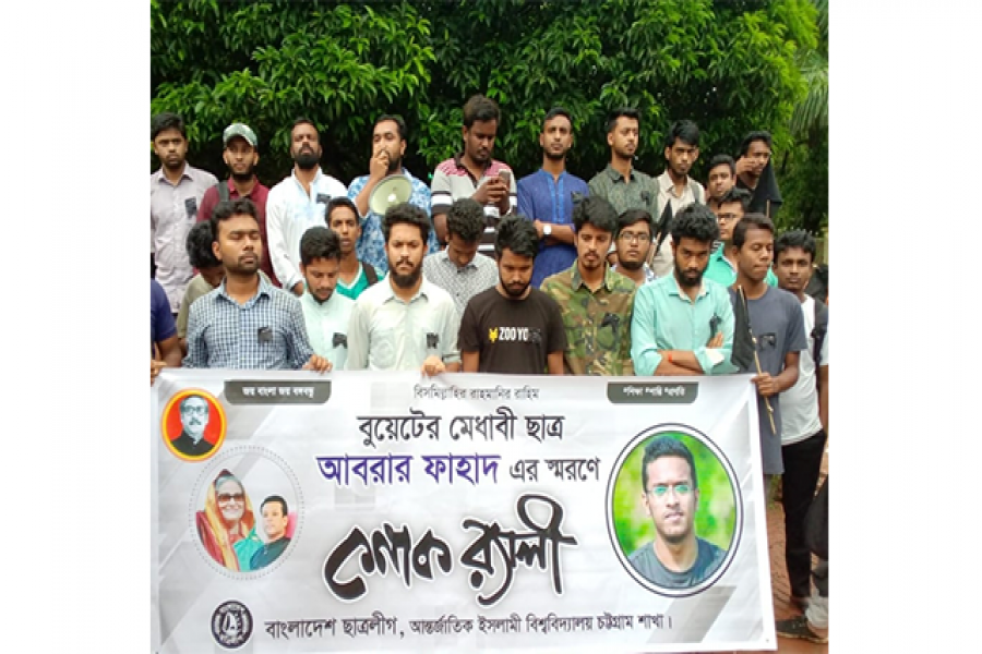 বুয়েট শিক্ষার্থী আবরার ফাহাদকে হত্যার প্রতিবাদে আন্তর্জাতিক ইসলামী বিশ্ববিদ্যালয় চট্রগ্রামে (আইআইইউসি) কালো পতাকা মিছিল ও শোকর‍্যালি পালন করেছে ছাত্রলীগের আইআইইউসি শাখা।