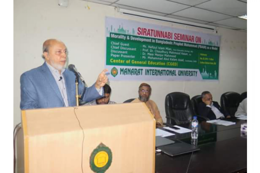 রাজধানীর বেসরকারি বিশ্ববিদ্যালয় মানারাত ইন্টারন্যাশনাল ইউনিভার্সিটি (এমআইইউ) সিরাতুন্নবী (সা.) পালন উপলক্ষে ‘মোরালিটি অ্যান্ড ডেভেলপমেন্ট ইন বাংলাদেশ: প্রফেট মুহাম্মদ (সা.) অ্যাজ এ মডেল’ শীর্ষক এক সেমিনার অনুষ্ঠিত হয়েছে।