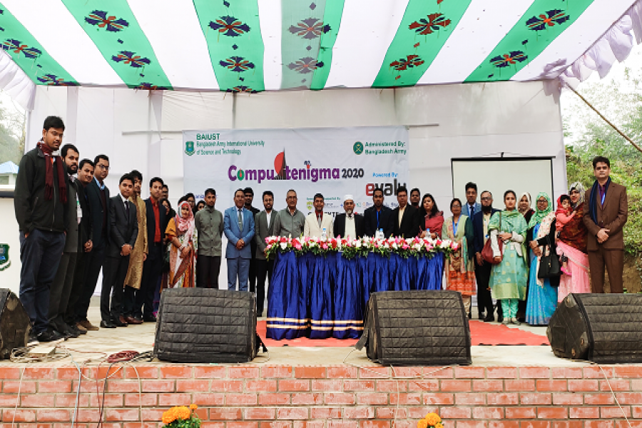 বাংলাদেশ আর্মি ইন্টারন্যাশনাল ইউনিভার্সিটি অব সায়েন্স এন্ড টেকনোলজিতে (বাইউস্ট) শনিবার দিনব্যাপী নানা আয়োজনের মধ্য দিয়ে অনুষ্ঠিত হলো জাতীয় কম্পিউটার উৎসব ‘কম্পিউটেনিগমা ২০২০’। বিশ্ববিদ্যালয়ের কম্পিউটার সায়েন্স এন্ড ইঞ্জিনিয়ারিং ডিপার্টমেন্ট এবং কম্পিউটার ক্লাবের যৌথ উদ্যোগে আয়োজিত এ উৎসবে বিভিন্ন বিশ্ববিদ্যালয়, কলেজ এবং স্কুলের শতাধিক শিক্ষার্থী ব্যক্তিগত ও দলগতভাবে বিভিন্ন প্রতিযোগিতায় অংশগ্রহণ করে।