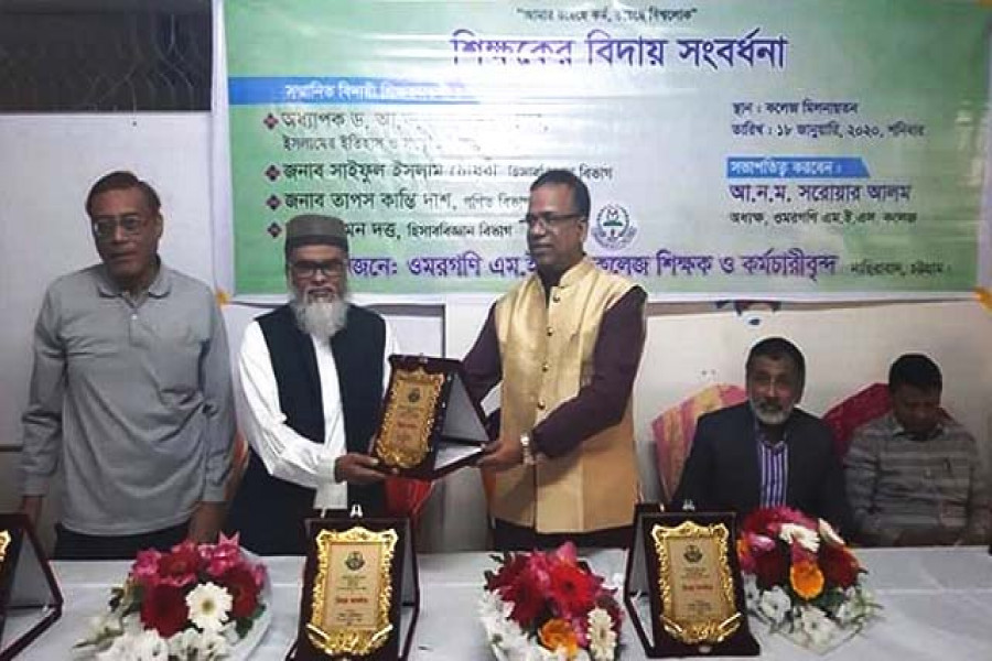 চট্টগ্রাম ওমরগণি এমইএস বিশ্ববিদ্যালয় কলেজে অবসরপ্রাপ্ত চারজন শিক্ষকের বিদায় সংবর্ধনা অনুষ্ঠিত হয়েছে। শনিবার (১৮ জানুয়ারি) কলেজ ক্যাম্পাসের মিলনায়তনে এ সংবর্ধনার আয়োজন করা হয়।