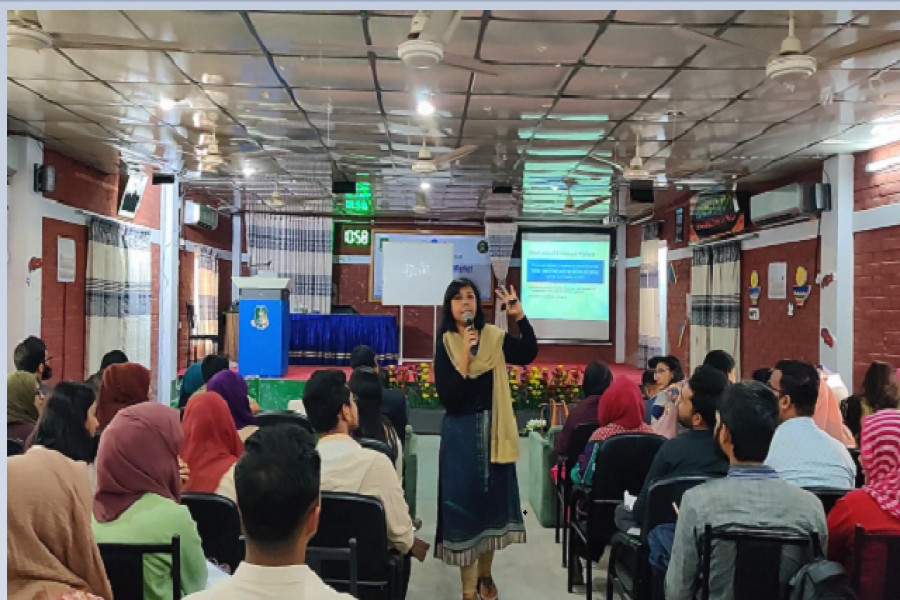 শিক্ষার্থীদের পুঁজিবাজারে বিনিয়োগ বিষয়ে বিষদ ধারণা প্রদানের লক্ষ্যে আয়োজিত সেমিনারটি উদ্বোধন করেন উপাচার্য প্রফেসর ব্রিগেডিয়ার জেনারেল কে এমসালজার হোসেন, এনডিসি, পিএসসি (অব:)। সেমিনারে আরও উপস্থিত ছিলেন রেজিস্ট্রার কর্নেল সুমন কুমার বড়ুয়া, পিএসসি (অব:), ব্যবসায় প্রশাসন বিভাগের প্রধান ফাতেমা জোহরা এবং বিভাগের অন্যান্য শিক্ষকবৃন্দ।