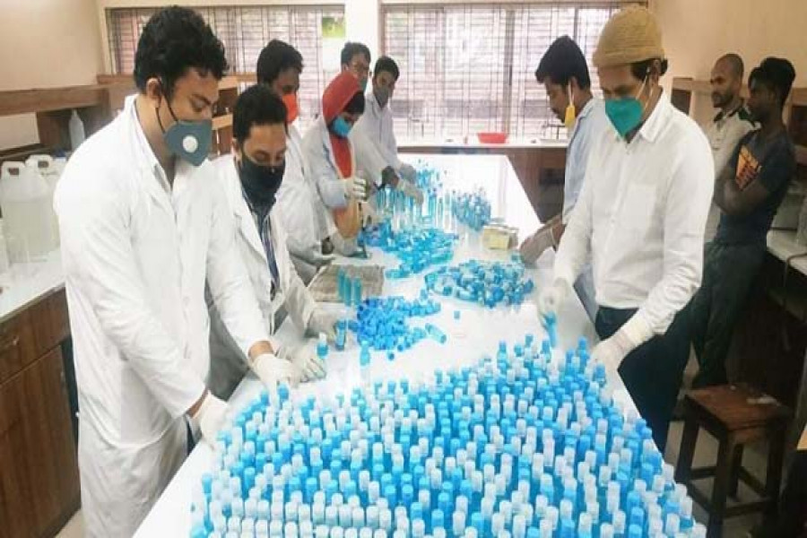 আজ মঙ্গলবার বিকালে সংগঠনটির অর্থায়নে সাভারের গণ বিশ্ববিদ্যালয়ের (গবি) বায়োকেমিস্ট্রি এন্ড মলিকুলার বায়োলজি বিভাগের পরীক্ষাগারে হ্যান্ড স্যানিটাইজার উৎপাদনের কাজ শেষ হয়। দুই দিনব্যাপী উৎপাদনকার্যে ওই বিভাগের শিক্ষক ও শিক্ষার্থীরা সার্বিকভাবে সহায়তা করেন।