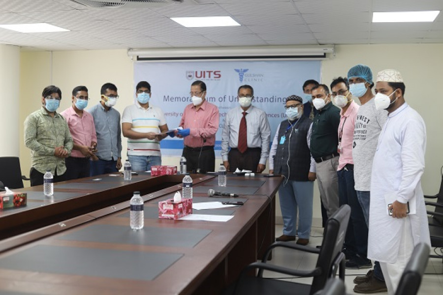করোনাভাইরাস (কভিড-১৯) পরীক্ষা ও অন্যান্য চিকিৎসা সেবা বিশেষ ছাড়ে দেয়ার লক্ষে ইউনিভার্সিটি অব ইনফরমেশন টেকনোলজি অ্যান্ড সায়েন্সেস (ইউআইটিএস) এবং গুলশান ক্লিনিক লিমিটেড-এর মধ্যে এক সমঝোতা স্মারক স্বাক্ষরিত হয়েছে।