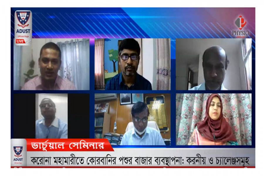 অতীশ দীপঙ্কর বিজ্ঞান ও প্রযুক্তি বিশ্ববিদ্যালয়ে ‘করোনা মহামারীতে কোরবানির পশুর বাজার ব্যবস্থাপনাঃ করনীয় ও চ্যালেঞ্জসমূহ’ শীর্ষক এক ভার্চুয়াল সেমিনার অনুষ্ঠিত হয়েছে। বুধবার বিশ্ববিদ্যালয়ের এগ্রিবিজনেস বিভাগের আয়োজনে সেমিনারটিতে প্রধান অতিথি হিসেবে যুক্ত ছিলেন ঢাকা বিশ্ববিদ্যালয়ের অধ্যাপক ও বিশ্ববিদ্যালয়টির বোর্ড অব ট্রাস্টিজের সদস্য ড. এম শাহীন খান ।