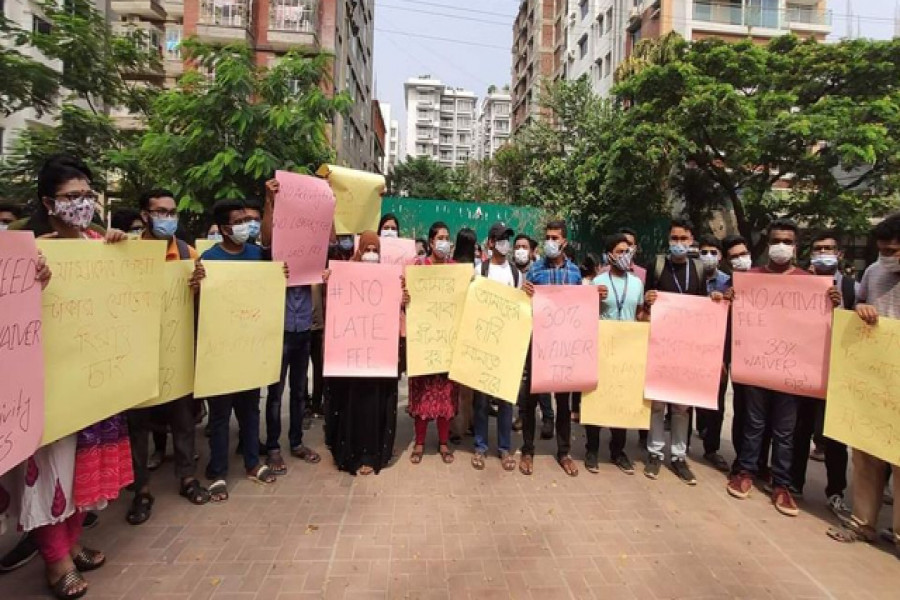 বিশ্ববিদ্যালয়ের শিক্ষার্থীরা জানান, গত সেমিস্টারে ২০% টিউশন ফি মওকুফ করা হলেও নতুন সেমিস্টারে সেটি উঠিয়ে দেয় বিশ্ববিদ্যালয় কর্তৃপক্ষ। এ বিষয়ে শিক্ষার্থীরা গত কয়েকদিন ধরেই ইমেইলের মাধ্যমে বিশ্ববিদ্যালয়ের ভিসি ও প্রো-ভিসির কাছে দাবি জানিয়ে আসলেও তাতে কোন সাড়া না পেয়ে আজ আন্দোলনে নেমেছেন।
