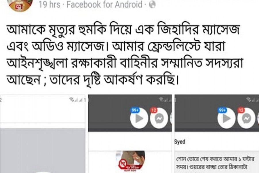 তিনি আরও বলেন, আমি একজন মুক্তিযোদ্ধার সন্তান। ৭১ টিভির লোগো সম্বলিত প্রোফাইল পিকচার দেওয়ায় আমার ধারণা সে (হুমকি দাতা) আমার উপর ক্ষুব্ধ হয়েই প্রাণনাশের হুমকি দিয়েছে।