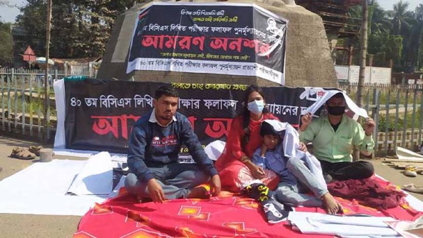 কারিগরি ত্রুটির অভিযোগ তুলে ৪০তম বিসিএসের লিখিত পরীক্ষার খাতা পুনর্মূল্যায়নের দাবিতে এবার আমরণ অনশন কর্মসূচি পালন করছেন অনুত্তীর্ণ প্রার্থীরা।