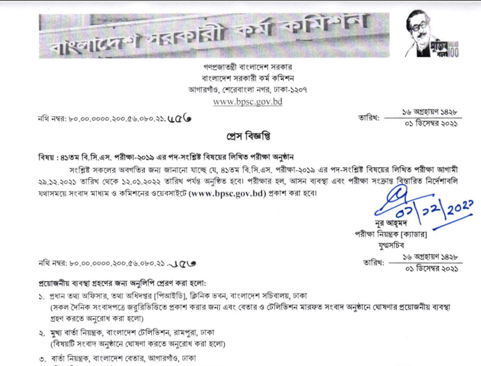বুধবার (১ ডিসেম্বর) সরকারি কর্ম কমিশনের (পিএসসি) পরীক্ষা নিয়ন্ত্রক নূর আহ্‌মদ স্বাক্ষরিত এক বিজ্ঞপ্তিতে এ তথ্য জানানো হয়েছে।