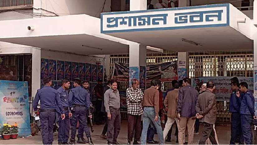 সোমবার (২০ ফেব্রুয়ারি) সকালে তারা ভিসির কার্যালয়ে তালা ঝুলিয়ে দেয়।