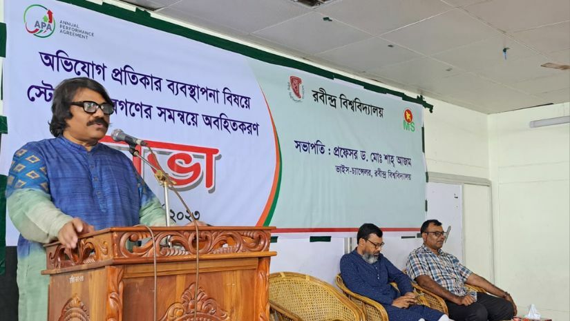 তিনি আরও বলেন, নানা সংকট কাটিয়ে রবীন্দ্র বিশ্ববিদ্যালয় আলোর দিকে ধাবিত হচ্ছে। বিশ্ববিদ্যালয়ে গুণগত শিক্ষা নিশ্চিত করা হচ্ছে। এবার কিউএস র্যাংকিংয়ে নবীনতম বিশ্ববিদ্যালয়গুলোর মধ্যে দ্বিতীয় অবস্থানে উন্নীত হয়েছে রবি। ইতিমধ্যে বিশ্ববিদ্যালয়ের ৩টি বিভাগের প্রথম ব্যাচের শিক্ষার্থীরা স্নাতক সম্মান সম্পন্ন করেছে। বিশ্ববিদ্যালয়টি নির্মাণের ক্ষেত্রে অংশীজনদের প্রত্যক্ষ সহযোগিতা থাকা দরকার।