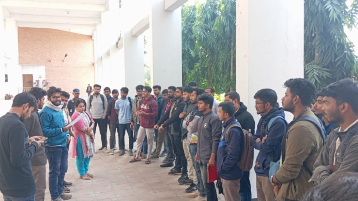 মানববন্ধনে শিক্ষার্থীরা বলেন, বিশ্ববিদ্যালয় দিবসে (২৫ জানুয়ারি) রাতে সাংস্কৃতিক অনুষ্ঠান চলাকালে মঞ্চে এক শিক্ষার্থীর নাচ প্রদর্শনের সময় প্রায় ২০-২৫ টি ডিম নিক্ষেপ করা হয়। এই ধরনের কর্মকাণ্ড নিঃসন্দেহে বিশ্ববিদ্যালয়ের নিজস্ব সংস্কৃতির উপর আঘাত। ডিম নিক্ষেপের ঘটনার সাথে যারা জড়িত তাদেরকে সুষ্ঠু তদন্তের মাধ্যমে চিহ্নিত করে দ্রুত সময়ের মধ্যে দৃষ্টান্তমূলক শাস্তির আওতায় আনতে হবে।