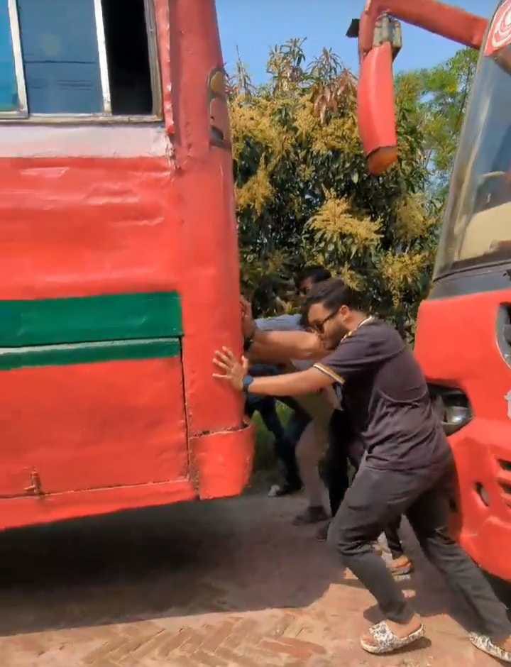 ধাক্কা দিয়ে বাস চালু করার এ সংক্রান্ত একটি ভিডিওতে দেখা দেখা গেছে, শিক্ষার্থীরা বাসটি চালু করতে ধাক্কা দিচ্ছেন। গত বৃহস্পতিবার ১৪ মার্চে বরিশাল ক্লাব থেকে বেলা ১২টায় বিশ্ববিদ্যালয়ের উদ্দেশ্যে ছেড়ে আসার কথা বিআরটিসি ৫ নম্বর বাসটি, কিন্তু চালু হচ্ছিল না বাসটি। পরে শিক্ষার্থীরা বাসটি ধাক্কা দিয়ে চালু করেন শিক্ষার্থীরা।