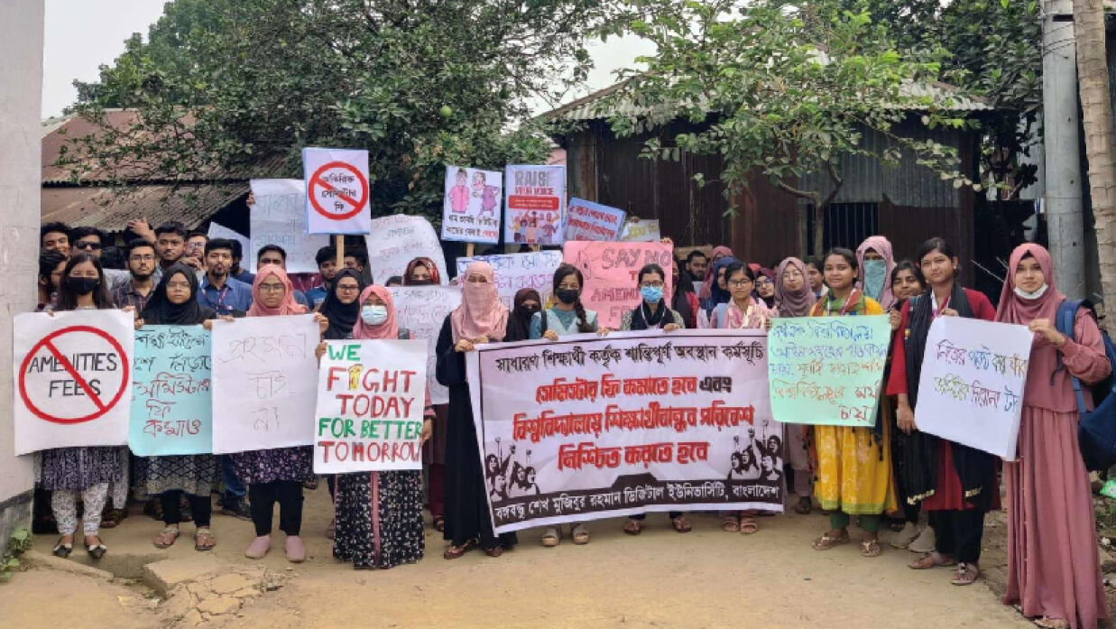 ক্লাস বর্জন করে আন্দোলনে ডিজিটাল ইউনিভার্সিটির শিক্ষার্থীরা