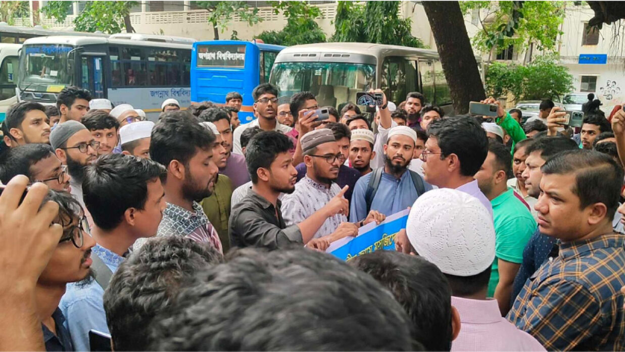 জবিতে ইমামকে অব্যাহতি: দ্বিতীয় দিনের বিক্ষোভেও বাধা প্রশাসনের