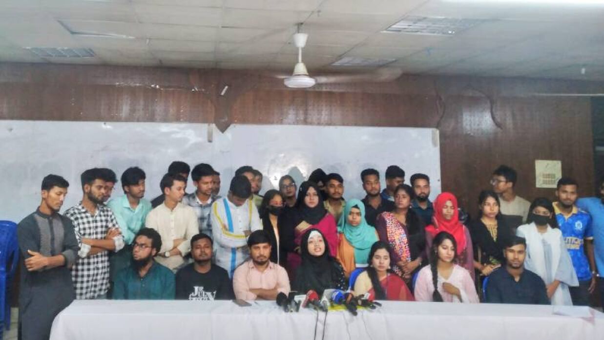 সংবাদ সম্মেলনে সাত কলেজের শিক্ষার্থীরা