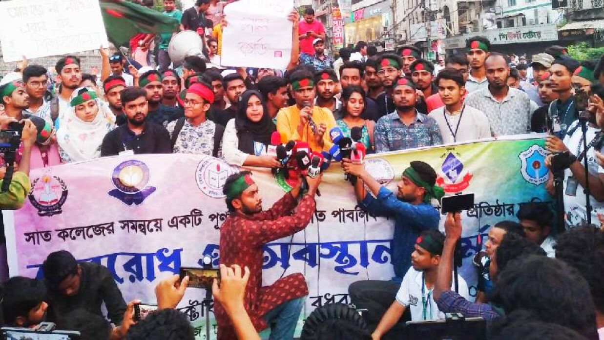 ঢাকা বিশ্ববিদ্যালয় অধিভুক্ত সাত কলেজকে বিশ্ববিদ্যালয় রূপান্তর কমিশন গঠনের দাবিতে আগামীকাল বুধবারও (৩০ অক্টোবর) সকাল-সন্ধ্যা ব্লকেড কর্মসূচি ঘোষণা করেছেন সাত কলেজের শিক্ষার্থীরা।