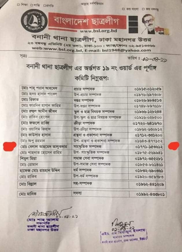 বিষয়টি নিয়ে বেলাল আহমেদ তালুকদারের সাথে কথা বললে তিনি দ্যা ডেইলি ক্যাম্পাসকে বলেন। ছাত্রলীগের সাথে তার কোনও ধরনের সংশ্লিষ্টতা ছিলো না। এছাড়া বনানী থানার কমিটিতে থাকার ব্যাপারেও তিনি কিছুই জানেন না। তার অজ্ঞাতে কমিটিতে রাখা হয়েছে বলে দাবি করেন তিনি।