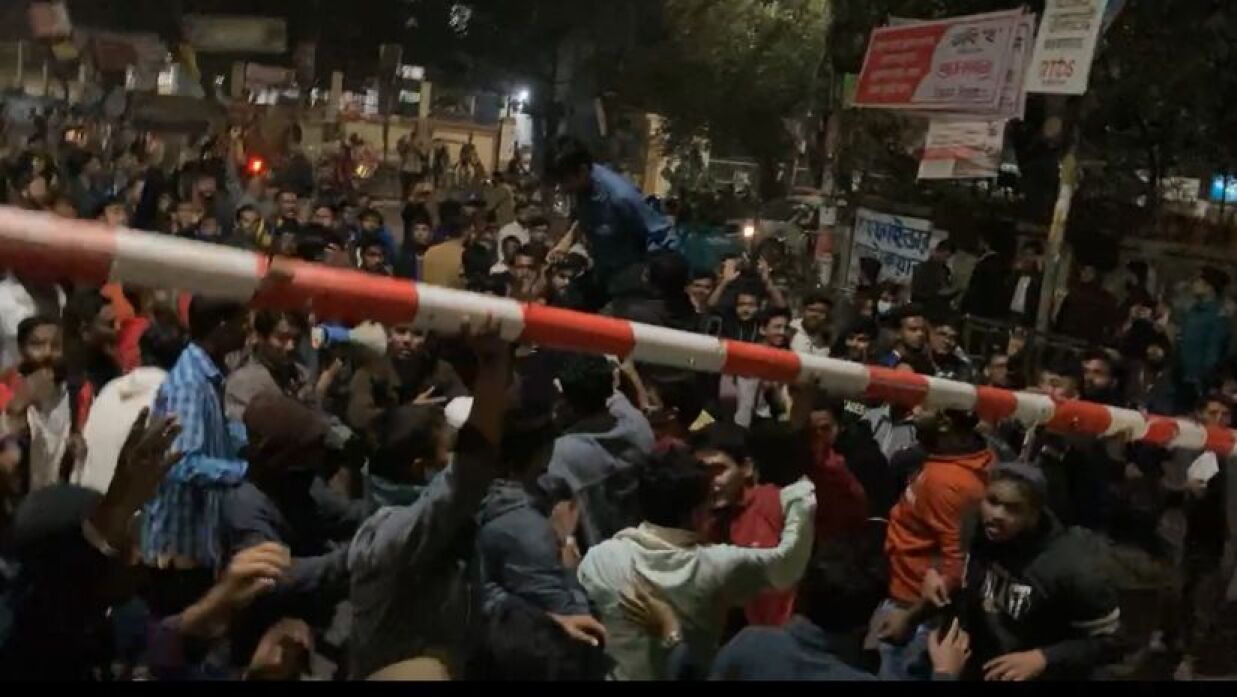 সাইন্স ল্যাব থেকে একটি বিক্ষোভ মিছিল নিয়ে ঢাকা বিশ্ববিদ্যালয়ের (ঢাবি) নীলক্ষেতের মুক্তি ও গণতন্ত্র তোরণের সামনে অবস্থান করছেন সাত কলেজ শিক্ষার্থীরা। আজ রবিবার (২৬ জানুয়ারি) রাত ১১টার দিকে সাইন্স ল্যাবে মোড় থেকে মিছিল নিয়ে নীলক্ষেত হয়ে সেখানে আসেন তারা।