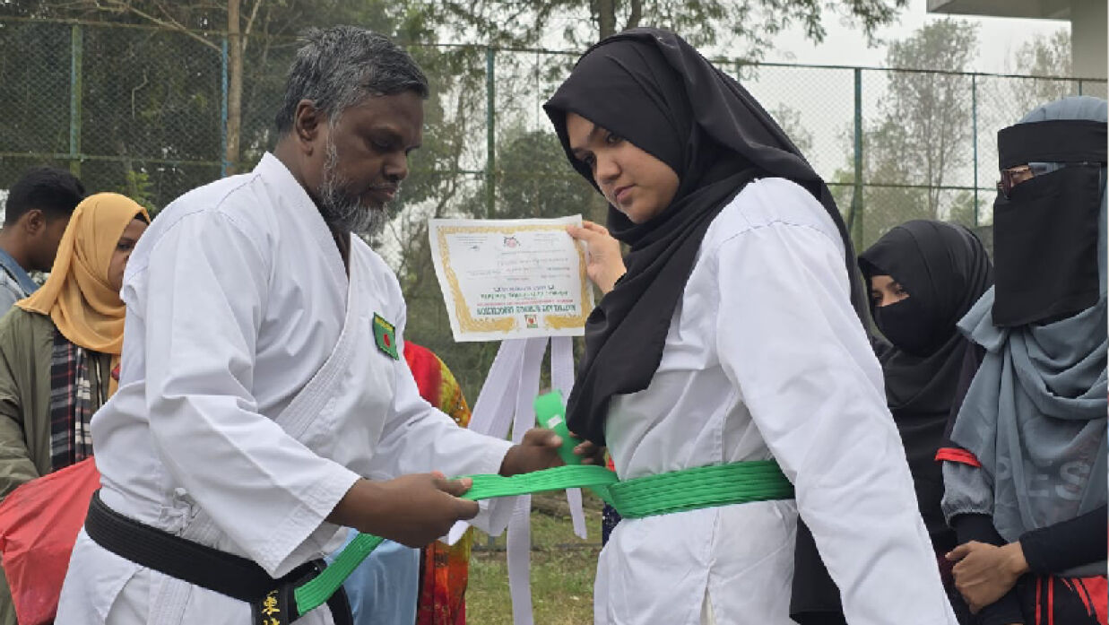 শেষ হলো ইসলামী বিশ্ববিদ্যালয়ের ৭ দিনব্যাপী ‘বেসিক মার্শাল আর্ট অ্যান্ড সেল্ফ ডিফেন্স ট্রেনিং’ শীর্ষক নির্ভয়া ওয়ার্কশপ। গত ২৫ জানুয়ারি সকাল ৭টায় বিশ্ববিদ্যালয়ের জিমনেশিয়ামে শুরু হওয়া এই ওয়ার্কশপ আজ শুক্রবার (৩১ জানুয়ারি) সকালে সার্টিফিকেট প্রদানের মধ্যে দিয়ে শেষ হয়।
