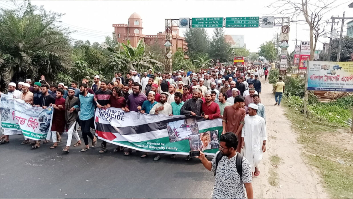 গাজায় ইসরায়েলের হামলার প্রতিবাদে বরিশাল বিশ্ববিদ্যালয়ে বিক্ষোভ-সমাবেশ