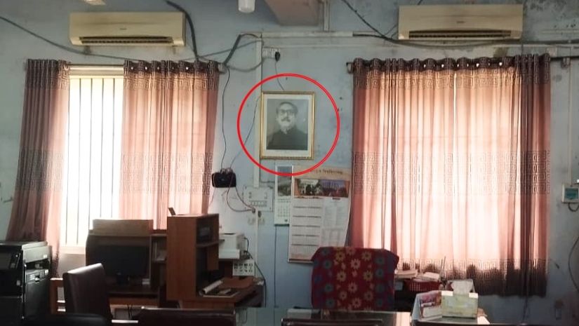 জবি প্রাণিবিদ্যা বিভাগের চেয়ারম্যানের কার্যালয়ের ঝুলতে দেখা যায় শেখ মুজিবুর রহমানের ছবি