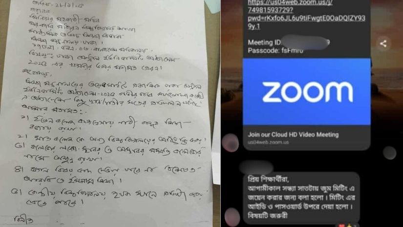 শুধু জুম মিটিং নয়, কোনো কোনো বিভাগে সাদা কাগজে হাতে লিখেও শিক্ষকদের মতামতগুলো শিক্ষার্থীদের সরবরাহ করা হচ্ছে। অপর একটি বিভাগের চ্যাট গ্রুপে আসমা নামে একজন শিক্ষক এমনই একটি লেখার ছবি শেয়ার করে লিখেছেন, ‘তোমরা এমন করে লিখে নাম, রোল, সেশন উপরের ই-মেইল দিয়ে পাঠাও।’ বিভাগটির পক্ষ থেকে চিঠির আদলে লেখা ওই নির্দেশনায় উল্লেখ করা হয়েছে, ‘ঢাকা সেন্ট্রাল ইউনিভার্সিটি অধ্যাদেশ-২০২৫ এর খসড়ার ওপর মতামত প্রেরণ।’